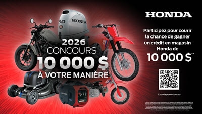 Aucun achat requis. Visitez Honda Promotions pour consulter le règlement.